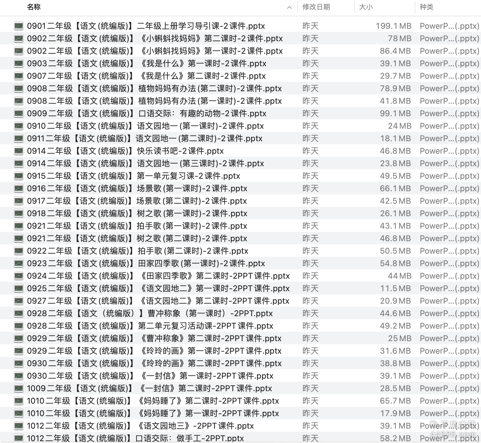 今天给大家分享的是与“国家中小学网络云平台”视频同步的PPT资源,二年级上册全部PPT,一共95个。