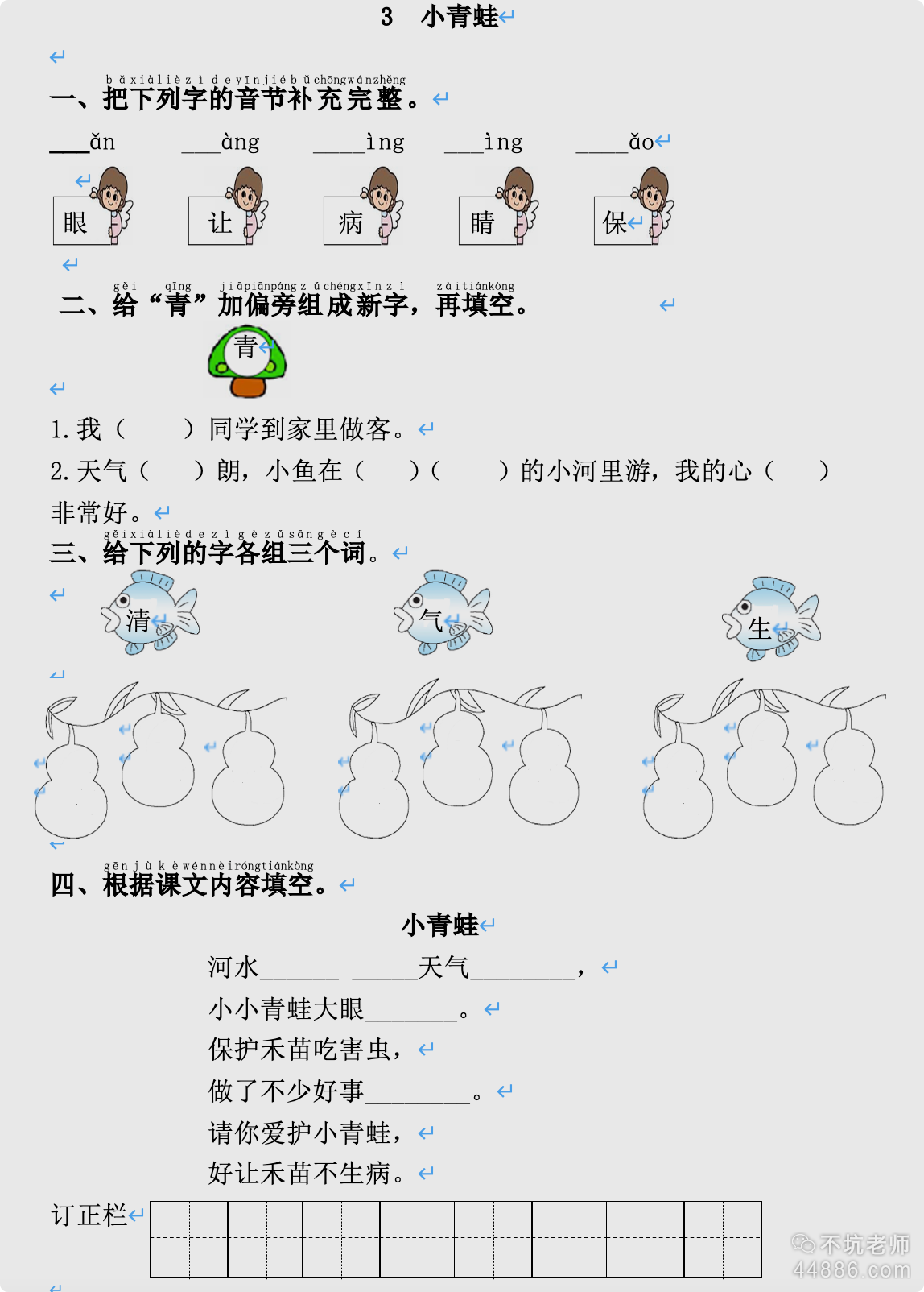 统编语文一年级下册同步课课练(含答案),无水印的word文档,可以编辑、修改!
