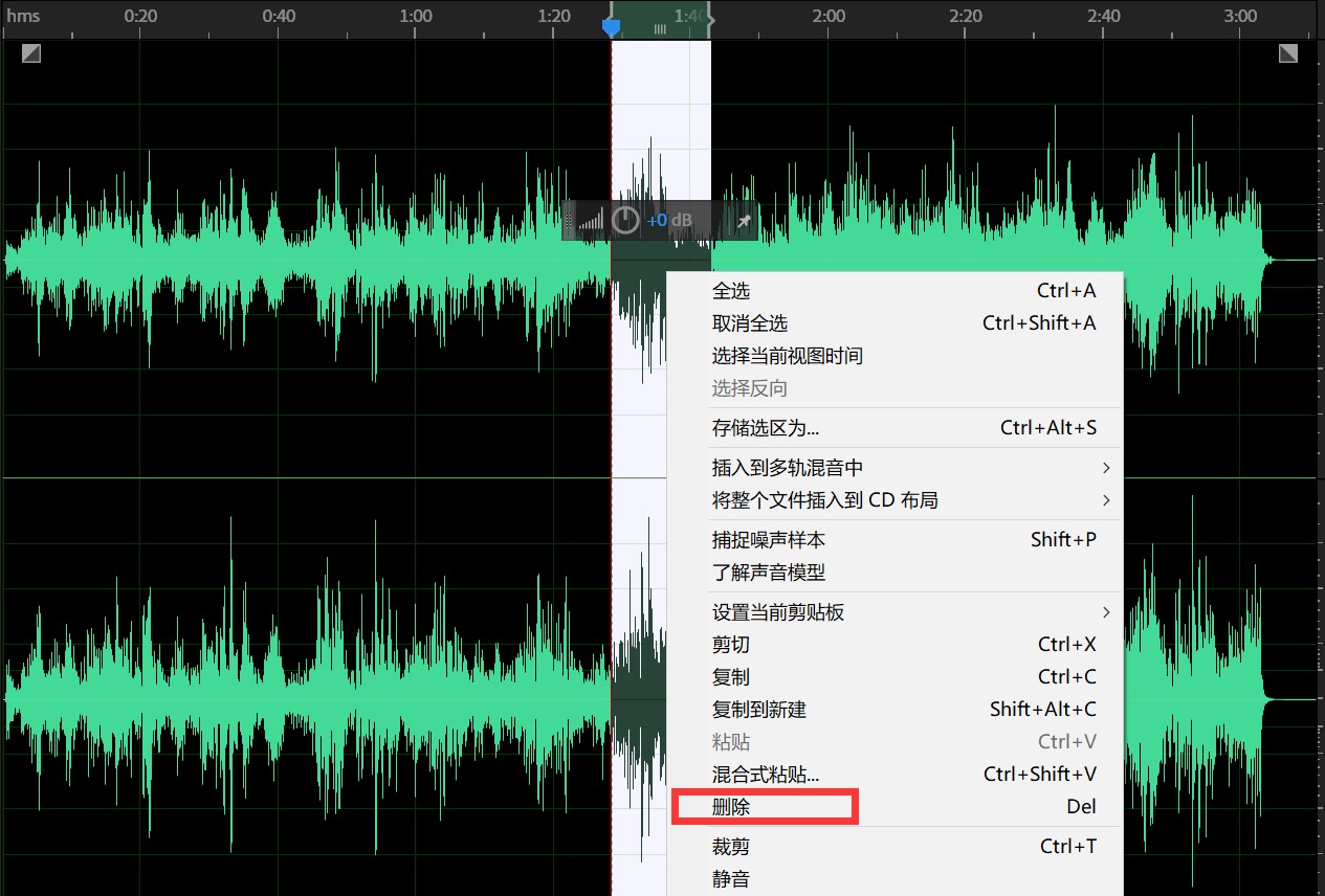 适用场景:当原有的音频过长,需要将它剪掉一部分的时候(不管是剪前面、中间还是结尾均可)。