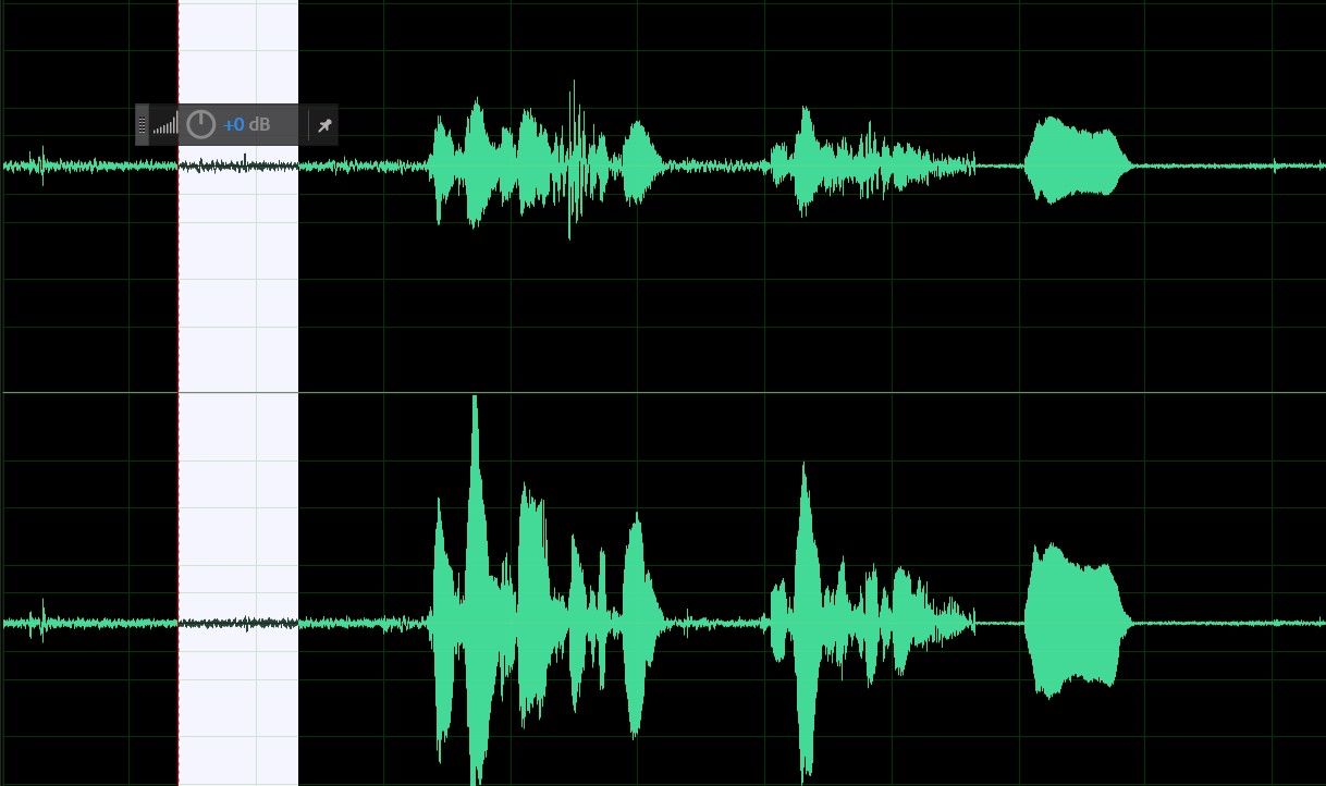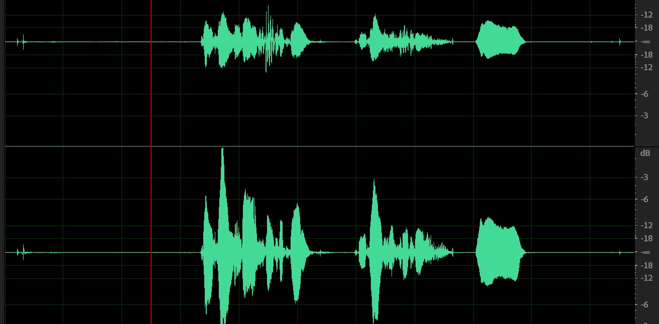 先看下面一段声波,那种很粗但又波形不明显的地方,就是噪音: