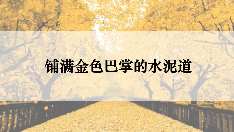 每一片法国梧桐树的落叶,都像一个金色的小巴掌,熨帖地、平展地粘在水泥道上。它们排列得并不规则,甚至有些凌乱,然而,这更增添了水泥道的美。