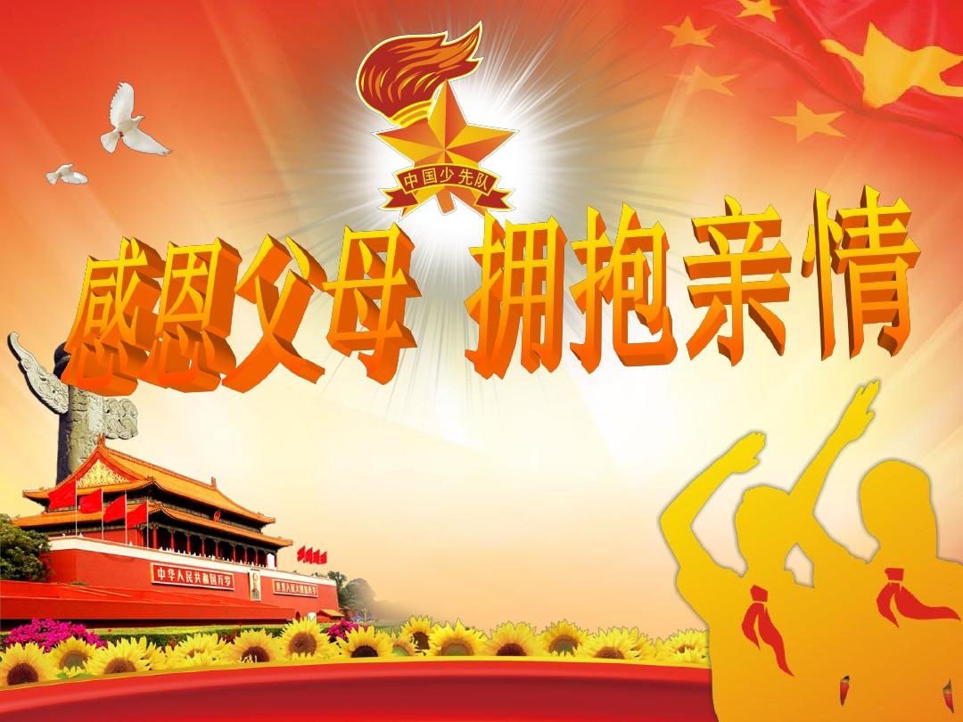队员们,在平时的生活中,我们经常对妈妈高喊:“妈妈,我要新衣服!”“爸爸,,我要5元钱买零食!”当父母满足要求后,总是高兴地转身离去。却从没有说一声“谢谢!”认为这一切都是父母应该给的,是理所当然的。却从不知在你的要求背后,父母付出了多少的劳动才能换来。所以,今天我们开展《感恩父母 拥抱亲情》主题中队会,希望通过今天的活动,让我们每个人都知道在生活中我们的每一点滴都离不开父母辛苦的付出,他们永远值得我们感谢。下面有请主持人上场!