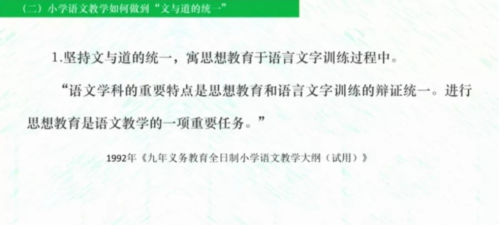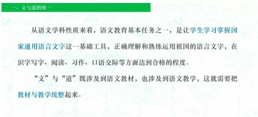 一个是坚持文与道的统一,寓思想教育于语言文字训练过程中。