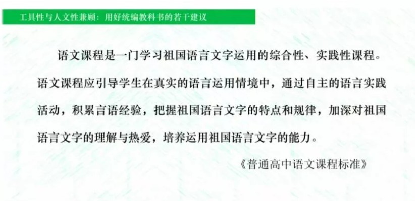 讲座的题目叫——《工具性与人文性兼顾:用好统编教科书的若干建议》。