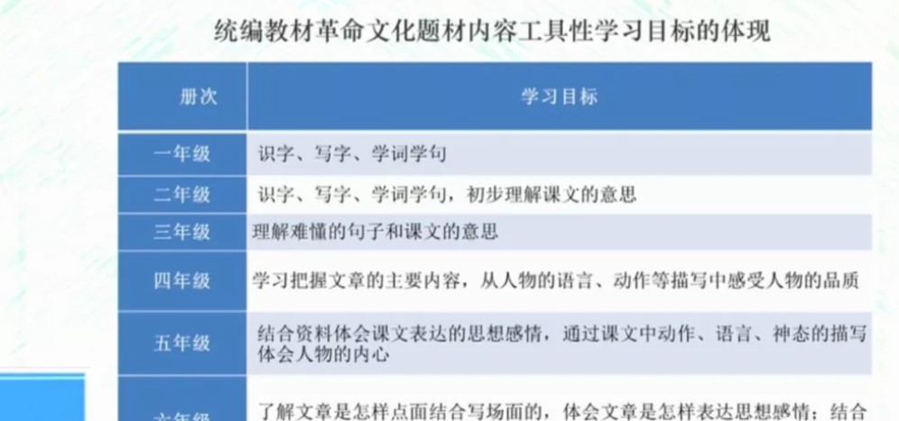 第二个是联系学生的思想实际,体现语文工具性的意义。这套教材革命文化的课文占了10%,但是我们从辨析的意义看,还要体现语文工具性的意义。