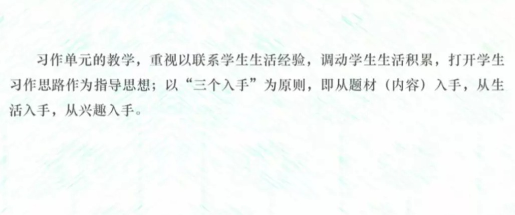 说到这个问题,我举个例子。就是我们现在的习作教学,我主张“三个入手”。从题材入手,从生活入手,从兴趣入手。