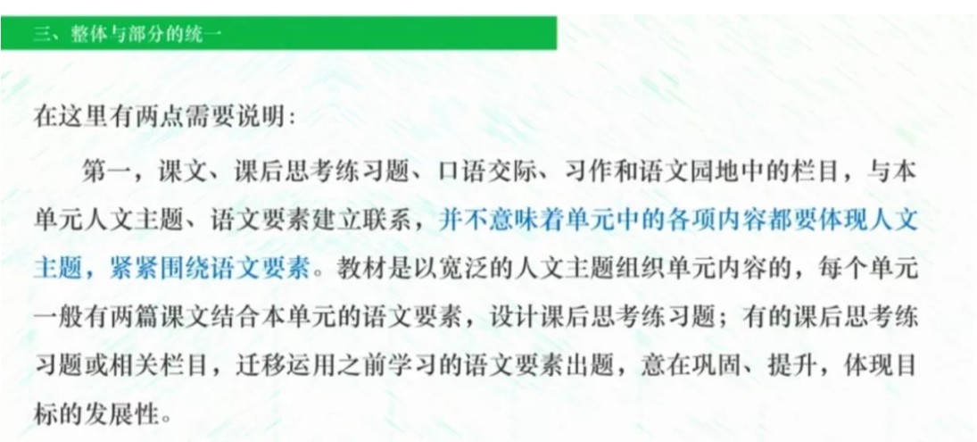 现在我们编教材要想每一篇课文都能够把这个单元的语文要素都结合起来是非常困难的,所以有的课后思考练习题或相关栏目,迁移运用之前学习的语文要素出题,目的是巩固、提升,体现目标的发展性。层次性和发展性是一个编排的思路。