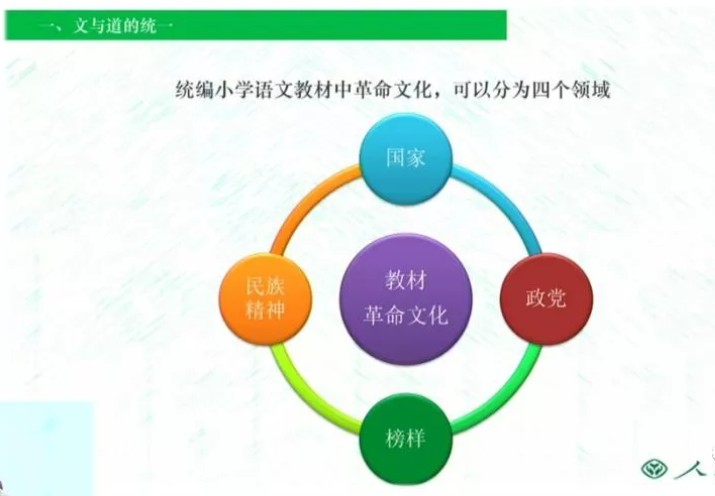 “从语文学科性质来看,语文教育基本任务之一,是让学生学习掌握国家通用语言文字这一基础工具,正确理解和熟练运用祖国的语言文字,在识字写字、阅读、习作、口语交际等方面达到合格的程度。”“‘文’与‘道’既涉及到语文教材,也涉及到语文教学,这就需要把教材与教学统整起来。”如何理解这句话呢?我们语文教材安排了一定数量的关于革命文化题材的内容,需要我们老师在教学中处理好训练语言文字与传播革命文化题材中蕴含的思想教育的价值这两方面的关系。