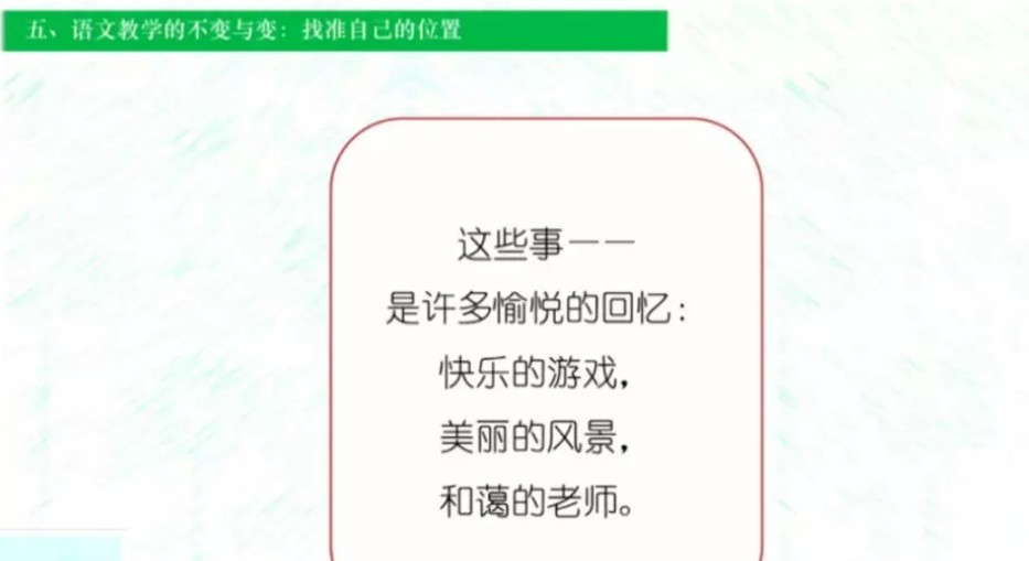 另外,“语文课程应引导学生在真实的语言运用情境中,通过自主的语言实践活动,积累语言经验,把握祖国语言文字的特点和规律,加深对祖国语言文字的理解与热爱,培养运用祖国语言文字的能力。”这段话强调的是语言文字的运用,我想也是未来要修订的义务教育阶段语文课程标准要秉承的理念。
