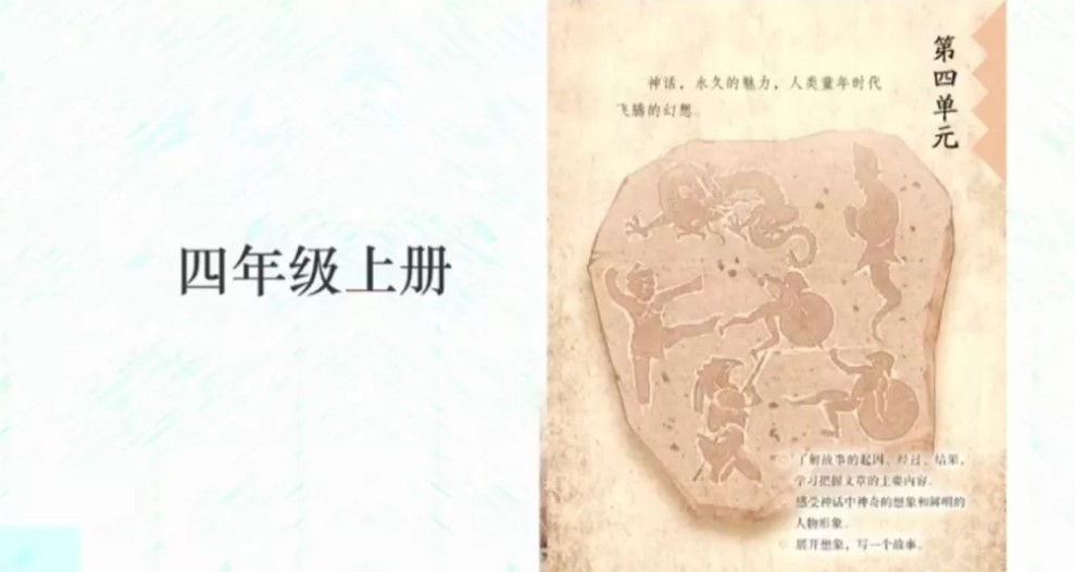 举一个例子,四年级上册的神话,从单元导语就知道神话的特点是什么,是人类童年时代飞腾的幻想。这个故事主要是从故事的起因、经过、结果来学习把握文章的主要内容,这是一个目标。