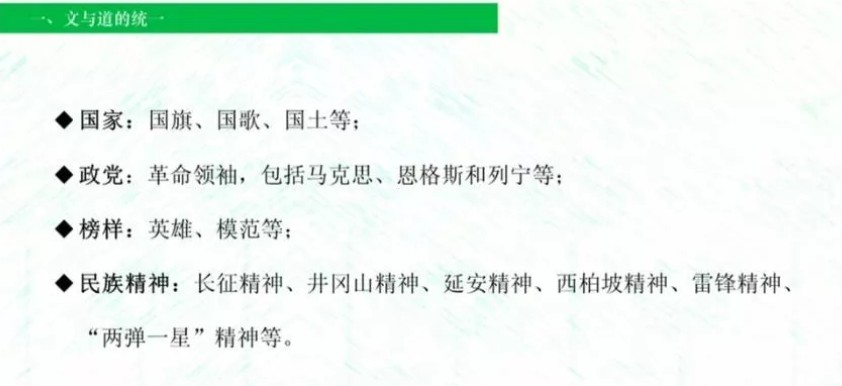 国家包括国旗、国歌、国土等,属于国家层面,体现国家意志的某些方面。政党包括革命领袖,比如毛泽东的文学作品《七律·长征》《咏梅》《为人民服务》和描写毛泽东的文章,这在统编教材中一共选了八篇。当然不都是作为课文,有的是在阅读理解里面,有的是在语文活动里面。周恩来、朱德总司令、邓小平,还有马克思、恩格斯、列宁等。八十年代,我们学过的《伟大的友谊》,年轻的老师不一定记得住了,这次我们在统编教材中仍然安排了。