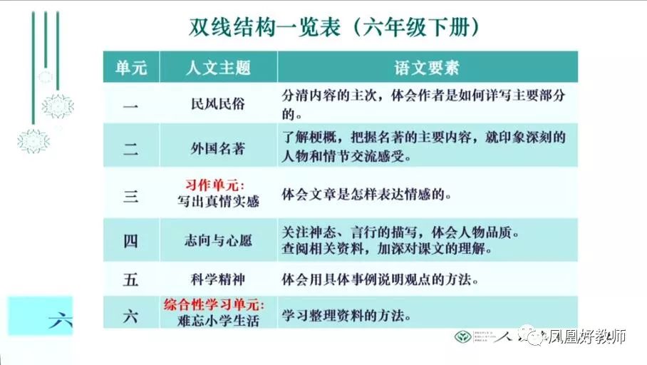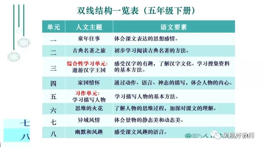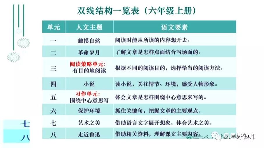 在教材里边,单元语文要素从哪里来呢?单元语文要素主要把握一些什么样的方向呢?我想有这样几点。