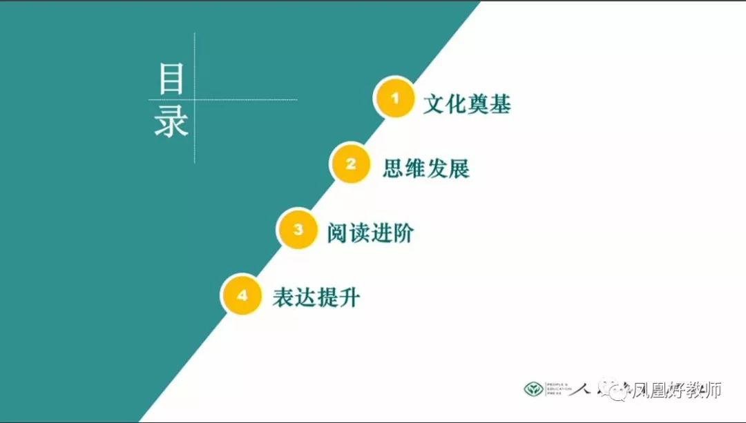 下面我进入今天主要的这几块内容,第一个是文化奠基。文化奠基里边我引用了高中语文课标的一段话,我想高中语文课标,我们的老师都可以关注起来。因为现在义教的课标已经开始修订,它的总体思路、总的指导思想,我想应该是跟高中课标一脉相承的。所以有很多关于“关键能力”“核心素养”等这些基本的概念,我们应该是有一些了解和基本的把握,这样可以更好地促进我们的教学。