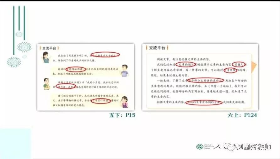 在交流平台里边我们有这样两次的设计,就是关于把握文章的主要内容包括。包括怎么样体会文章的思想感情,我们做了一个这样的梳理和总结。所以交流平台的这个价值,就是在前面学生有大量的这个阅读实践经验的基础上,引导学生再来提升、梳理,让他有一些理性认识,然后知道今后在遇到这种情况,我可以怎么做?