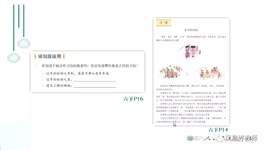 这个单元的习作,我们也是来写家乡的习俗。让学生介绍自己家乡的风俗,或者是写他经历的活动,还可以去对某些他觉得不太妥当的一些习俗做一些批判,或者是发表一些自己的观点。比方说我们每次过年的时候,都会看到自媒体讨论说有的地方女性不让上桌。即使是远道而来的儿媳妇儿,可能也不让上主桌吃饭,只能是女眷一起在小桌子上或者是在厨房。如果孩子对这样的习俗有自己的想法,那么他可以在这个习作里边来发表,让我们一起来做一切判断。就是在习作交流的基础上,探讨好的习俗如何去传承,一些相对来说比较落后的,怎么去改进使得我们的社会变得更加文明。