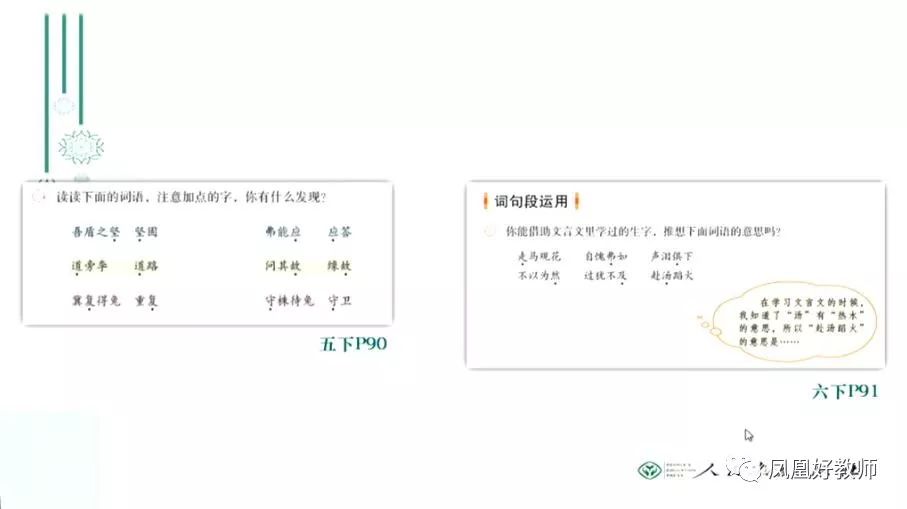 这里边的两个练习活动,体现了文言文和现代汉语之间的关系。我们想这个特别重要。我们学习文言文,但其实课程标准里面没有提学习文言文。但是我们认为,小学阶段还是可以初步接触,让学生有所了解的。我们也可以看到,孩子们在课堂上的表现是非常可喜的。