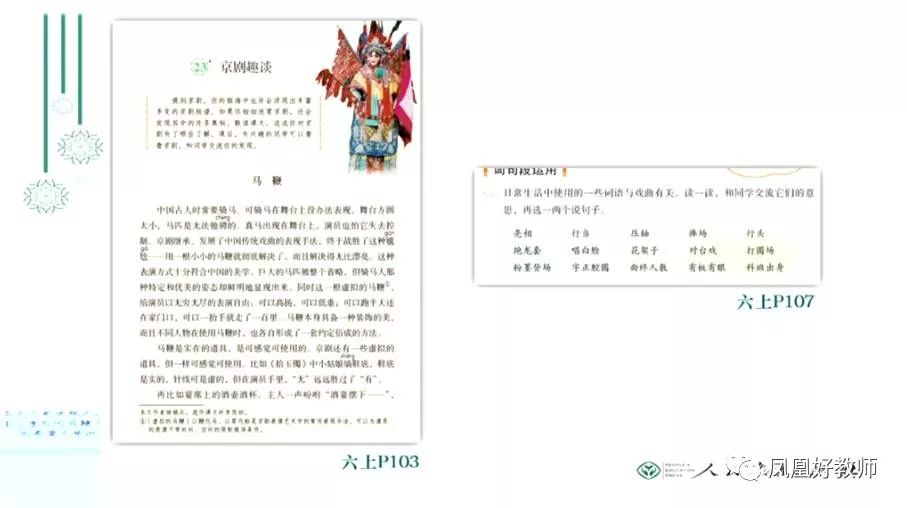 如果他能回溯,去看一下“唱白脸”原来是这个意思,可能还会引发其他对传统戏曲的兴趣,我想这也是非常好的一个方向。比方里面还有“花架子”“打圆场”等等,都是非常常用的词语。如果我们经常这样,一类一类地引导孩子深究词语的本意,去看看它的来龙去脉,我想里边不光是有文化的含义,还有一个非常实际的好处,就是以后学生在遇到词语的时候,可能不只是我们中年级说的,遇到词语就去理解它。他以后再遇到词语的时候,他可能都会有别样的感情,他就会去想一下,这个词语到底是什么情况呢?这个成语到底是源自哪儿呢?我要去看一看。我觉得这些都应该是非常好的思路,引导学生去学习词语。