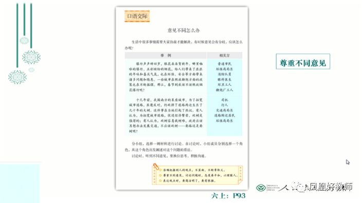 尊重不同意见,让他们有不同身份、角色的体验。遇到一个问题,可能不同的人有不同的看法,因为他视角不同。所以在这里边,每一次设定一个不同的身份,会发现社会上有不同的意见是很正常的。那么,这种不同的意见我们怎么样去知道,而不是像以前说“你怎么会这么想”,好像“唯我独尊”——我想的是对的,我的三观最正了,你怎么会这么想呢?我们如果更多地让学生去体会,怎么样围绕一个话题讨论,怎么样见识不同的观点,让学生能够更好地、更有包容性地跟别人交流、沟通,达成某些共识。