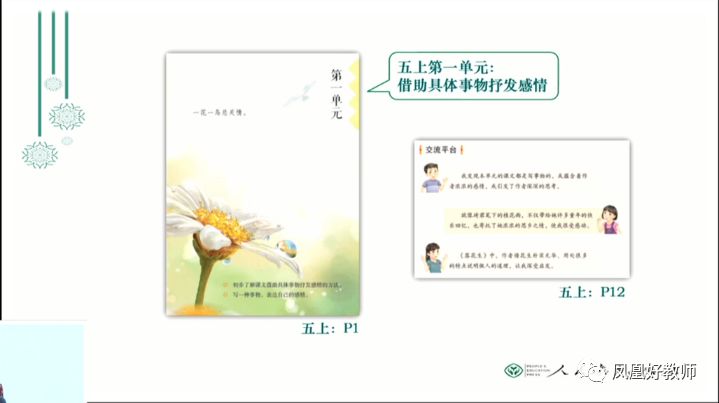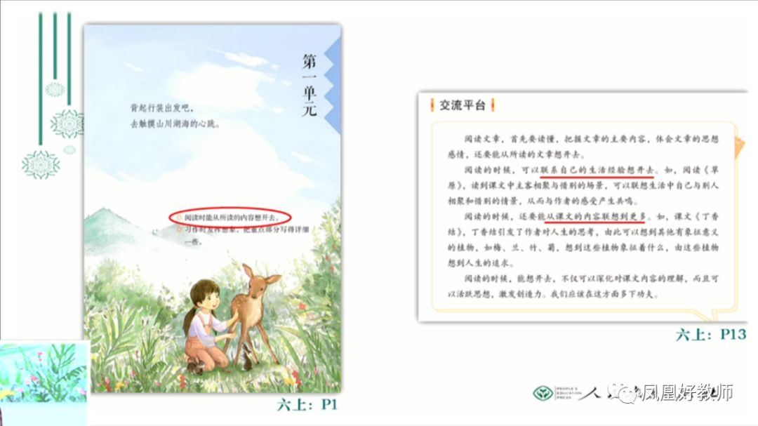 那么在交流平台里边,我们也提示学生可以联系自己的生活经验想,可以结合课文的内容去联想到更多。可能比方说,他读《丁香结》,看到作者由丁香结引发了人生的思考,那他可能想到他们家门口种的这个梅花,引发他自己的思考,引发它自己的联想。所以这个单元,我们主要是从这个点切入,去引导学生发展他的形象思维。