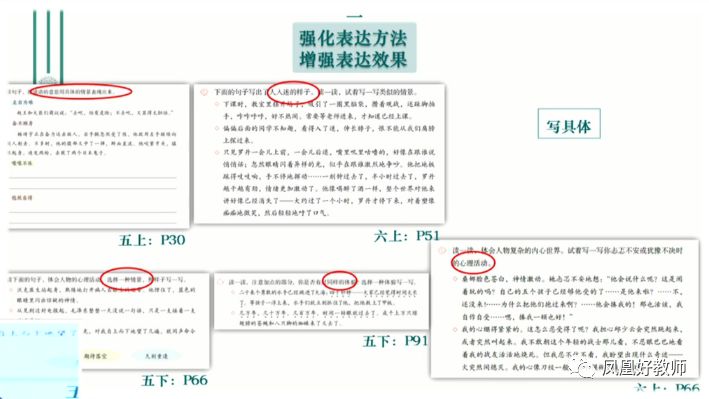 六下:分清主次详略。这里边还是多说一句,文章主要写什么次要写什么,是根据作者想要重点表达的意思决定的。我们一直在强调让学生写具体,但是我们首先要让学生知道我为什么要在这个地方写具体,我想这个是特别重要的一个观念。否则,学生写下来可能啰里啰嗦、拉里拉杂写了一大片,反而淹没了重点。他应该是基于他自己的写作目的,好知道他为什么要做这样的表达,在这个前提下再去布局他的详和略。