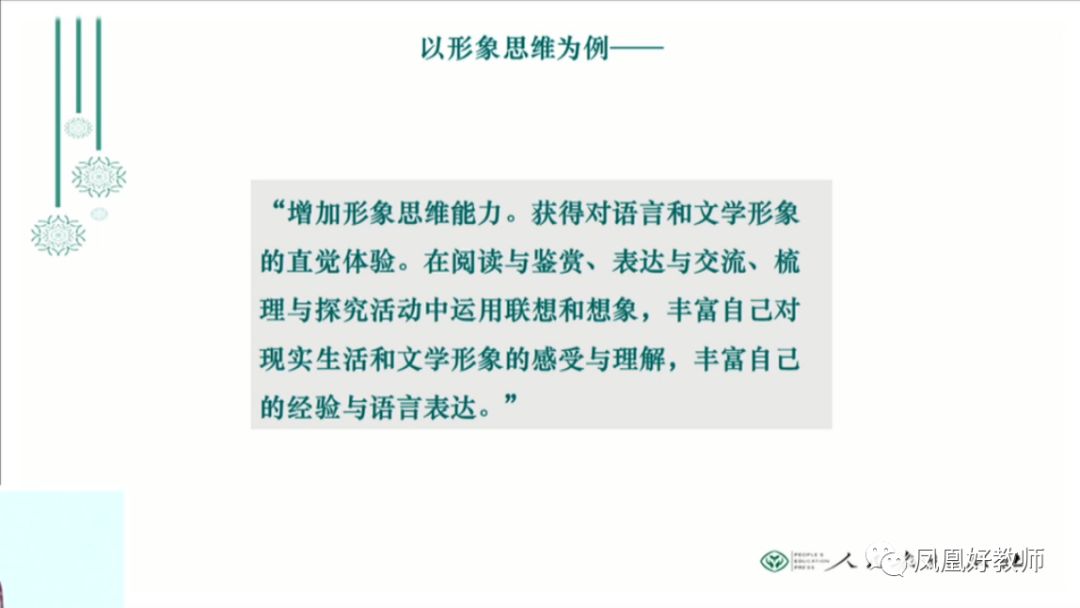 但是这个我想并不意味着形象思维就可以放到一边,我们就全力以赴去发展他的抽象思维、逻辑思维。因为在我们的语文学习里边,特别是文学作品的阅读上,形象思维能力是至关重要的,所以它是非常有语文课程特点的一个表现。