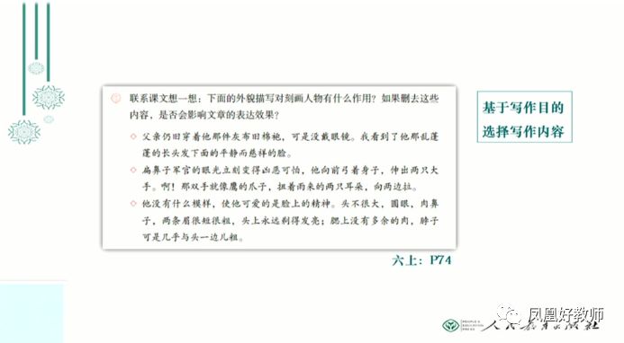我想我们的孩子,有的孩子是可以做到的。所以我们这里边用的是如果怎么怎么样,你也可以怎么怎么样。老师们在读教材的时候,看到习作里面有这样一种表述的话,就可以看到它是一种可选项。就是说有的孩子,如果他有兴趣,他就可以这样来做,作为一个选择。