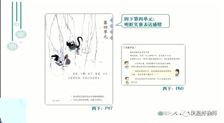 四年级下册:明贬实褒表达感情。我们在阅读的时候去体会这一点。这个单元老师们可能有所了解,就是讲动物的那个单元,母鸡呀、白鹅呀,这个单元表达情感的特点尤其典型。