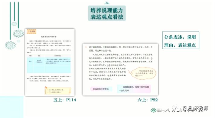 选择合适的材料说明观点。比方口语交际演讲的时候,让学生知道有一个观点之后,要去表达,要去说服别人,要去鼓动别人,就要有一些材料来证明自己的观点,有条理地表达。