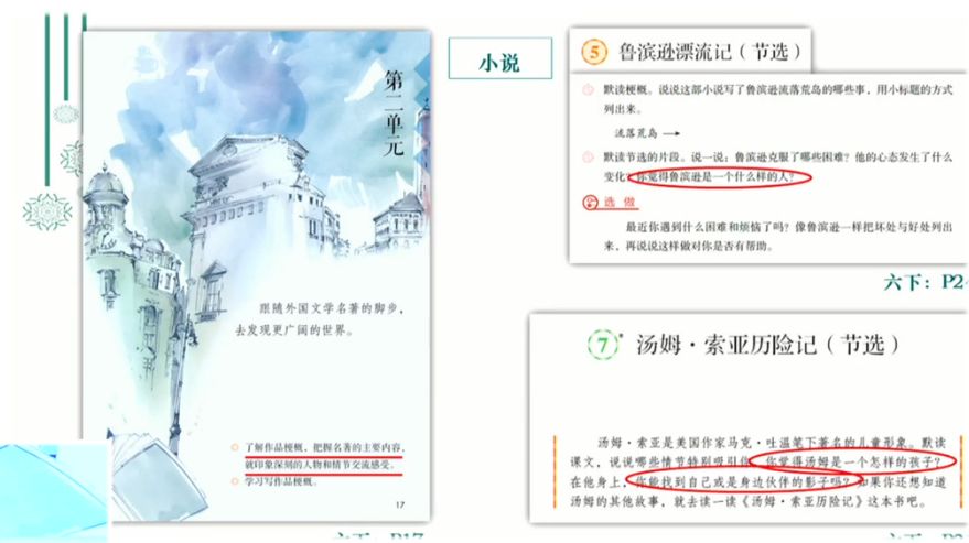 这不光是帮助他理解这篇课文,实际上他今后再读到比较有难度,比较有深意的文章的时候,他也可以有一个思考的方向。五年级下册名著单元也有难度。我们给学生设定了一系列比较有挑战性的阅读任务,我们觉得也挺有必要的,因为它有不同方面的价值。