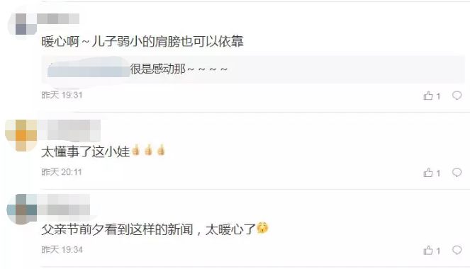 她猜测,小男孩旁边的男子可能是他的爸爸,小男孩担心有人会吵到睡着了的爸爸,所以才会做出这样的举动。这在她看来,觉得特别暖心、感动。