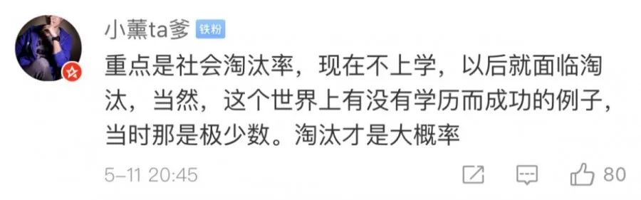 社会高速发展也伴随着高速的淘汰率,现在不读书,以后就会被淘汰,这个世界有没有学历却成功的例子,但那是极少数,被淘汰,才是大概率!