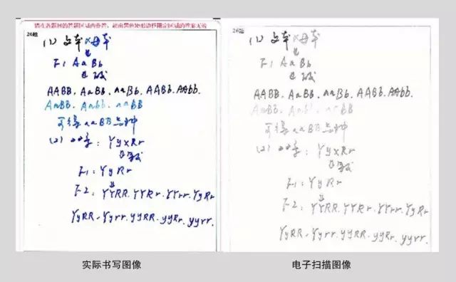 2. 蓝色钢笔书写后,扫描字迹较浅,若无法辨认,容易被误判或不给分。