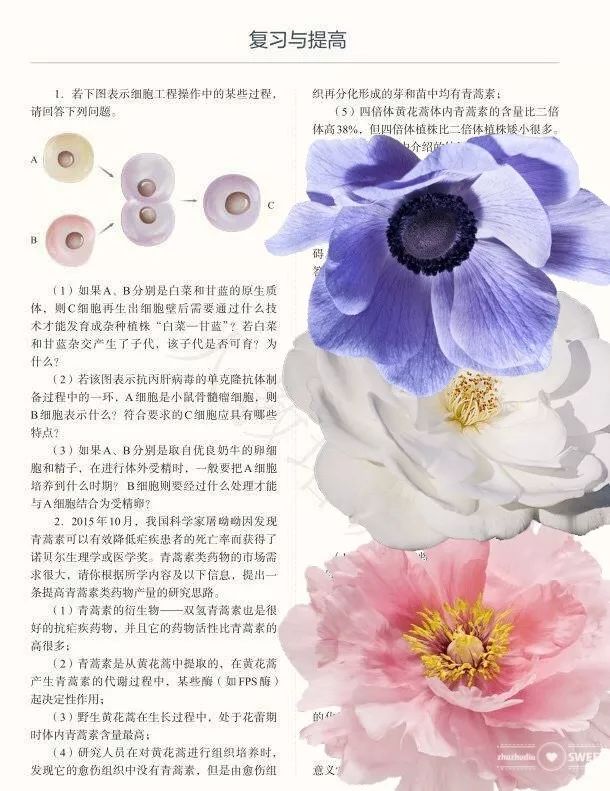 《普通高中教科书生物学 选择性必修3 生物技术与工程》 章末练习题(右边鲜花遮住了另一道神秘题目哦!)