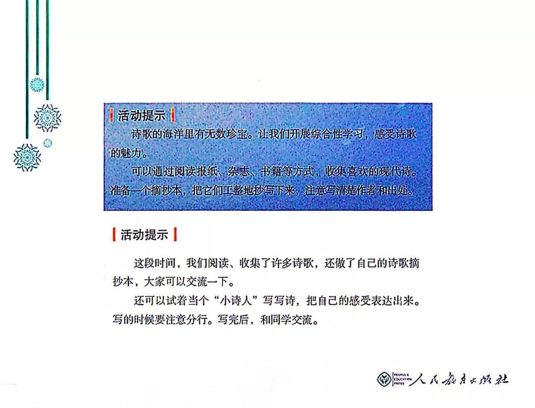 如,现代诗学习单元,将活动进行了分解。