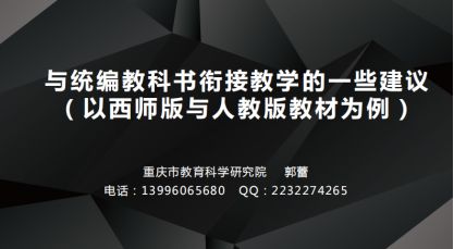 今年九月,统编教材将全面使用,对未使用此教材的地区和老师提出了挑战。市小学语文教研员郭蕾老师根据全市小学语文教材使用的现状,做了题为《与统编教科书衔接教学的一些建议 (以西师版与人教版教材为例)》的讲座。她首先回顾了教材的变迁,阐释了教材更换的现实需求,指出衔接研究目的旨在理解课程、把握教材、有效衔接、平稳过渡。郭老师在前期团队研究的基础上,通过具象的数据和图表,对西师版、人教版和统编版教材在识字写字、阅读、习作(写话)、口语交际、综合性学习、句段练习、语言积累等方面进行了比对分析,提出了切实可行的衔接教学建议,教师要根据教材特点和学生实际,因“材”制宜,因“生”施教,加强整合,进行补学。