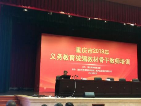 6月26日至28日,重庆市2019年义务教育小学语文四至六年级骨干教师培训在重庆出版集团四楼礼堂如期举行。本次培训由重庆市教育委员会主办,重庆市教育科学研究院、重庆出版集团有限公司承办,重庆市教科院初教所张咏梅副所长、人民教育出版社小学语文编辑室林孝杰老师、重庆市小学语文教研员郭蕾老师、山西省教科院崔云宏老师出席活动,全市各区县小学语文骨干教师近500人参与了此次培训。