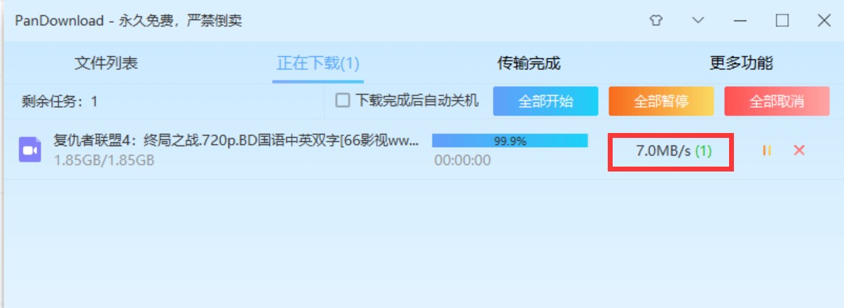 它能够突破百度网盘的限速,能用光你的宽带,在用它下载过程中,你的电脑几乎别想干其他事情了,因为它把网速占完了。