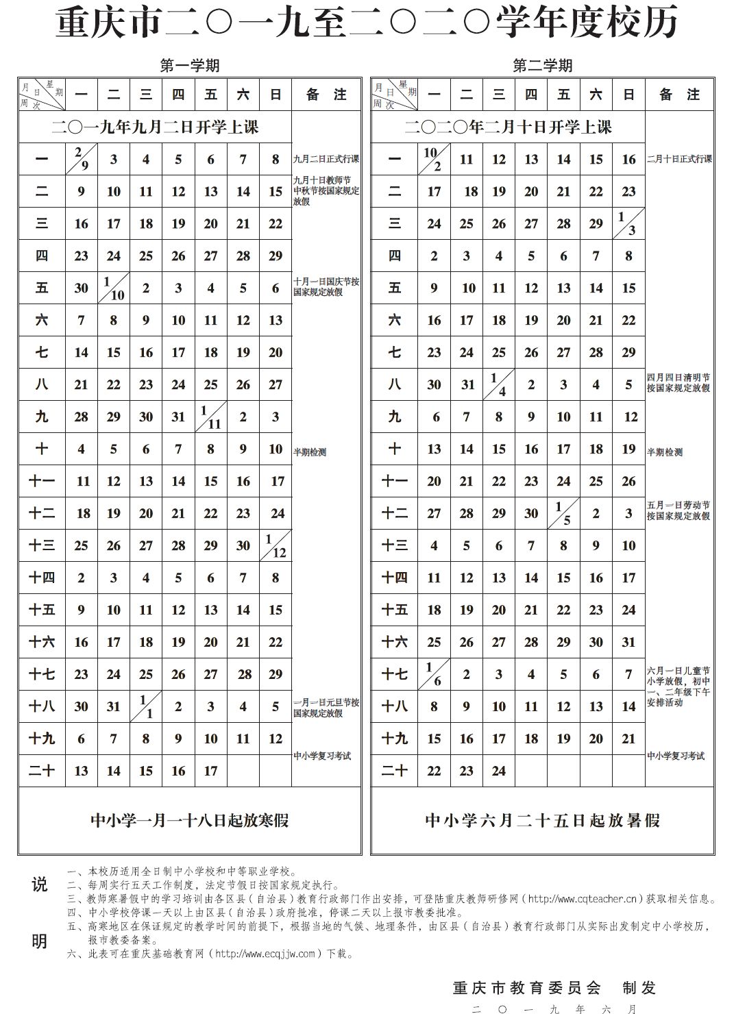 ▼ 重庆市2019至2020学年度校历 ▼