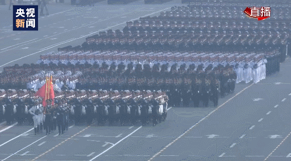分列式上,空中护旗梯队、徒步方队、装备方队、空中梯队依次通过天安门广场,向世人展示了改革强军的成就风貌,彰显了国威军威。