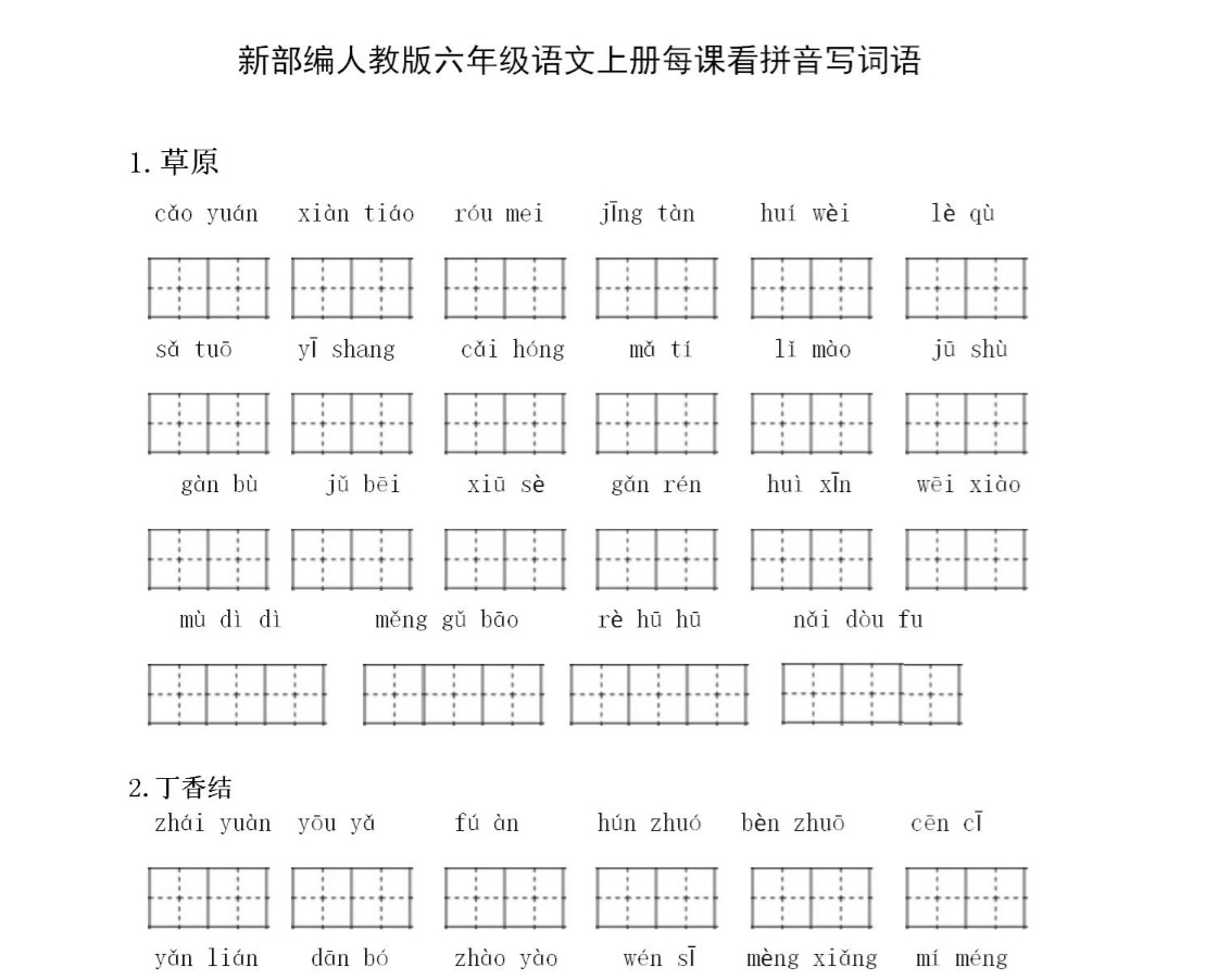 部编版六年级语文上册全册看拼音写词语(可打印)