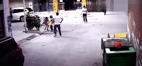 这些人把画面中可怜求救的父亲扑倒在地,殴打他,并且大声地叫喊着:“抓坏人啦,坏人抢孩子啦!”