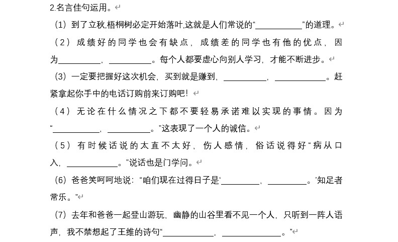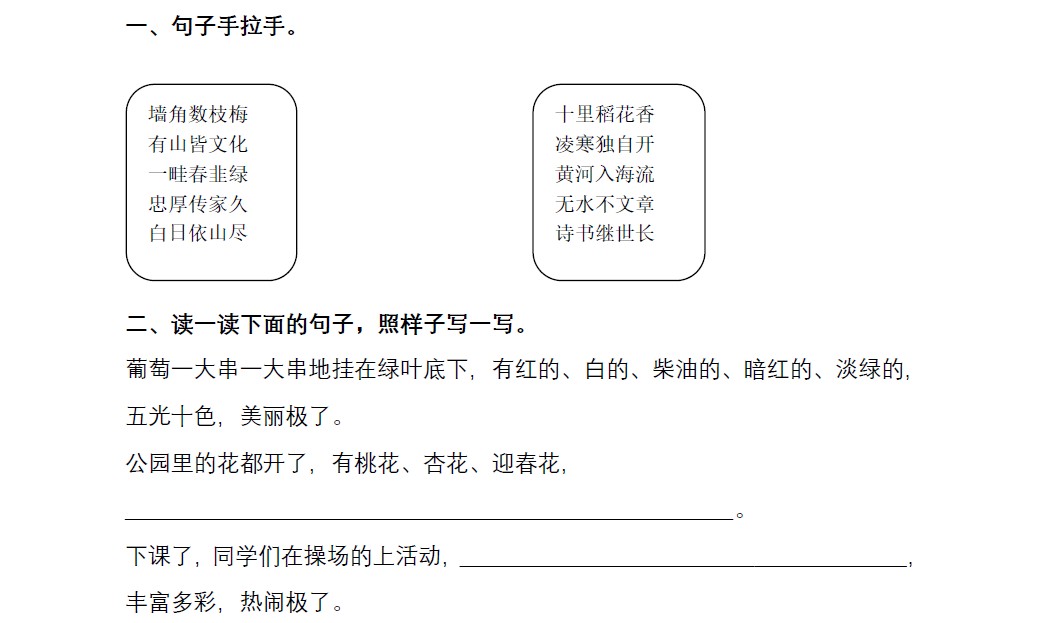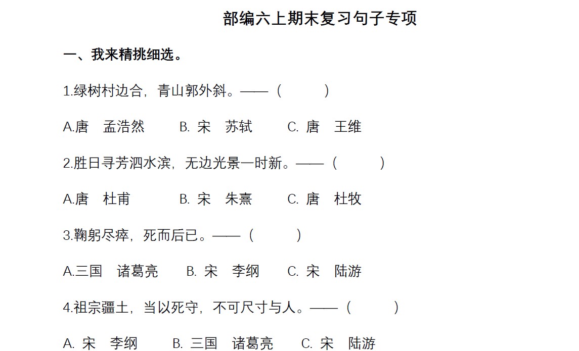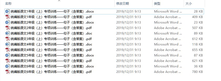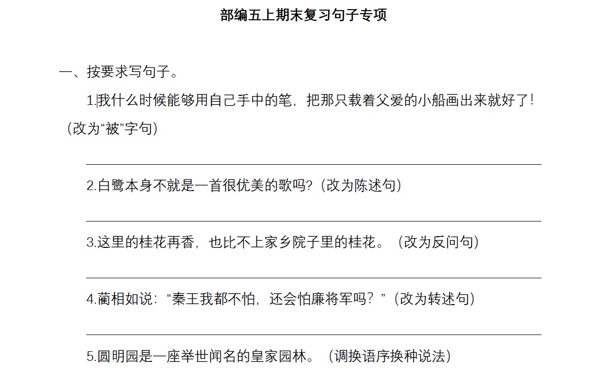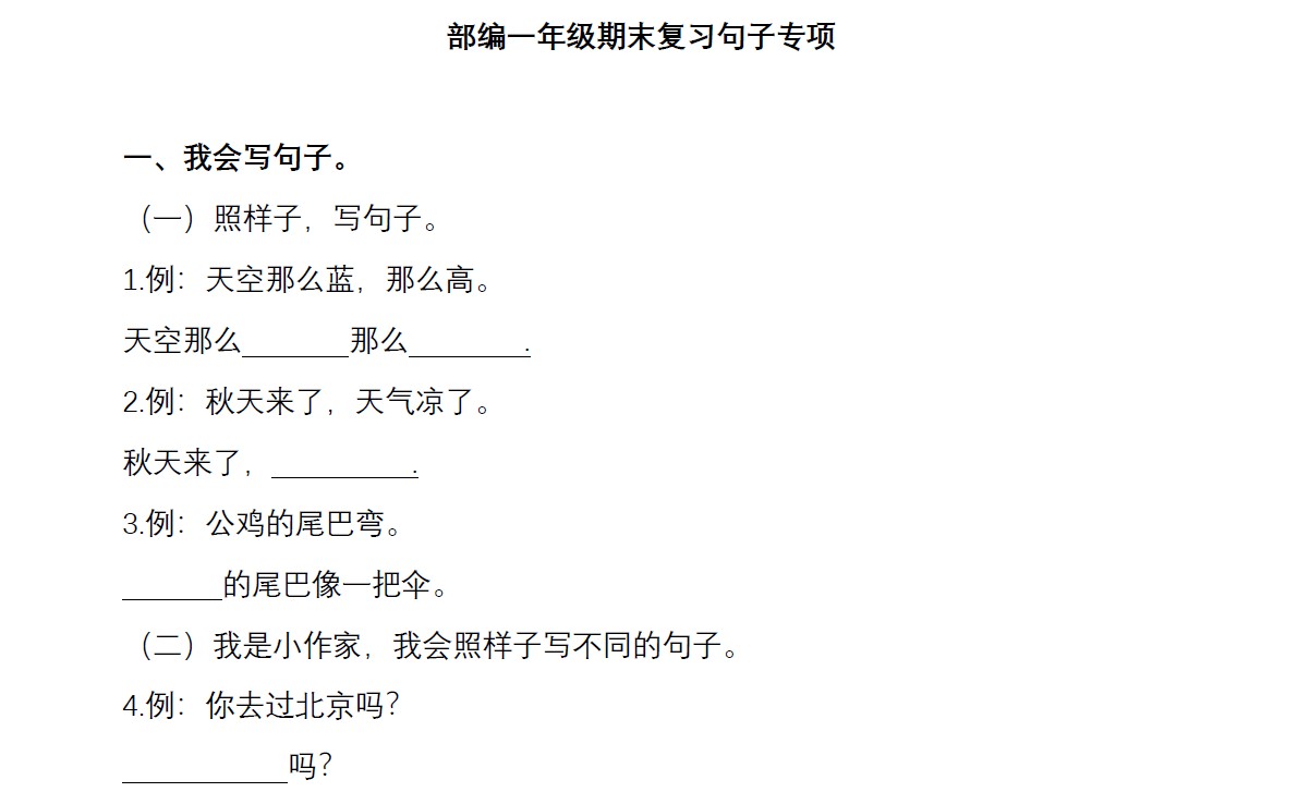 下载打印 | 部编教材1-6年级上册期末专项练习——句子