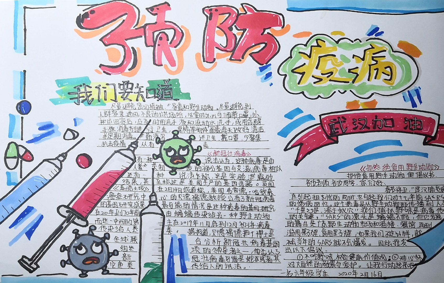 武汉加油抗击新型冠状病毒(肺炎)中小学生手抄报