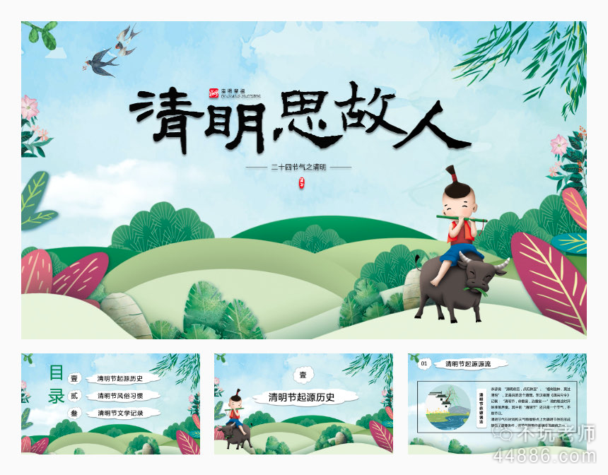 今天给大家在网上找了一个很漂亮的清明节模板,大家可以下载后修改里面的内容,进行自己的创作。