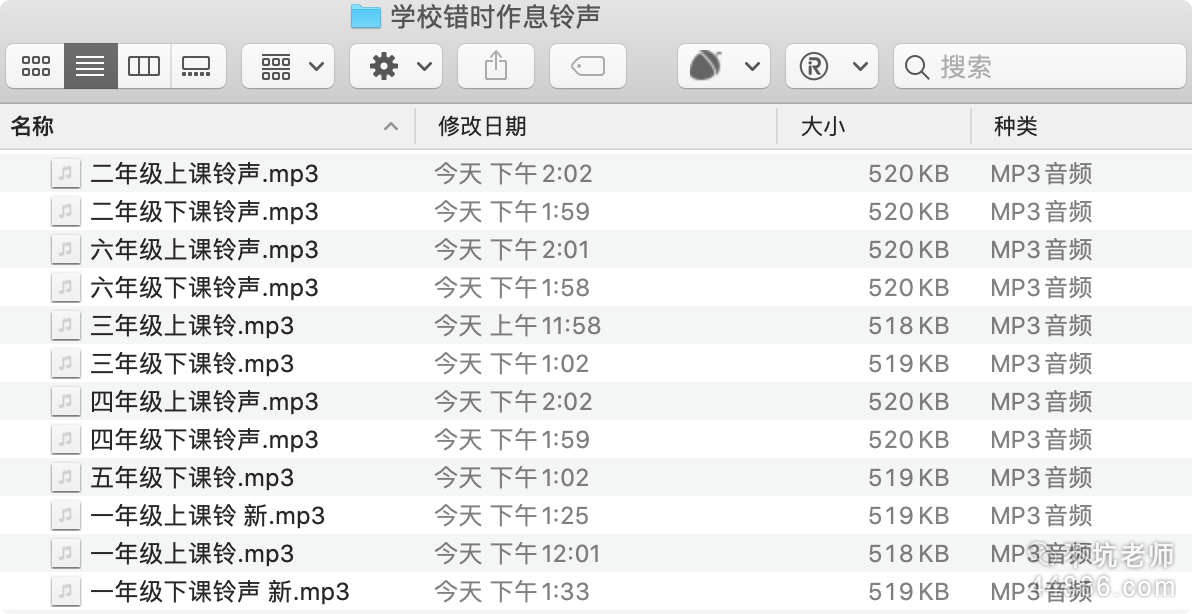 目前只有1-6年级的上下课铃声,中学可以只取1-3年级的使用,后续如果有添加,也在同样的下载地址中,请关注~~~