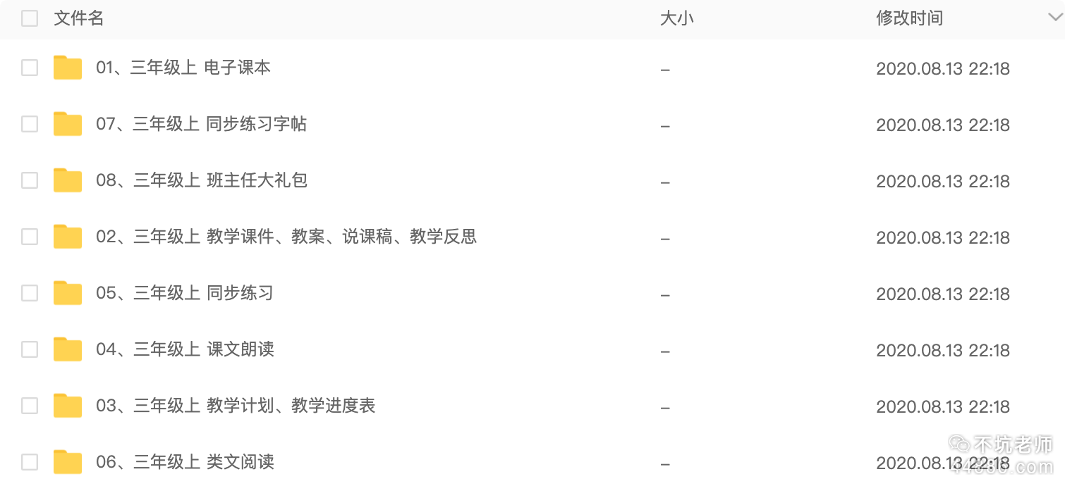 今天给大家整理带来的资源是:《部编语文三年级上册教学资源》,其中包括:阅读资料、课文朗读、教学计划、电子课本、同步字帖、同步练习、班主任礼包等。