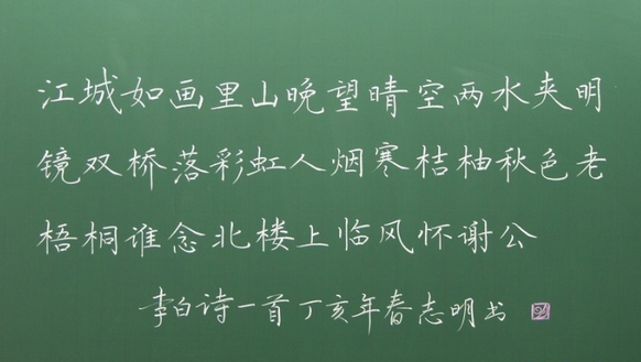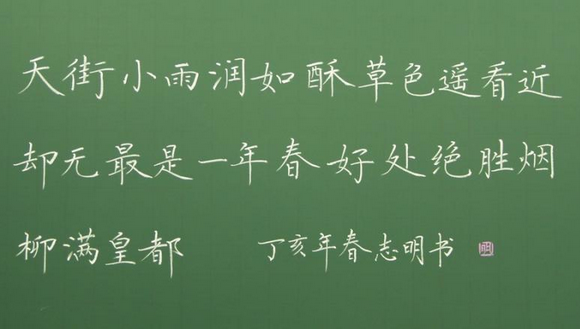 所以,写粉笔字不可为写字而写,不可在心事重、心不静的状态下去写,不可无所用心的去写。寄情于书,借字抒怀,则形神兼备。