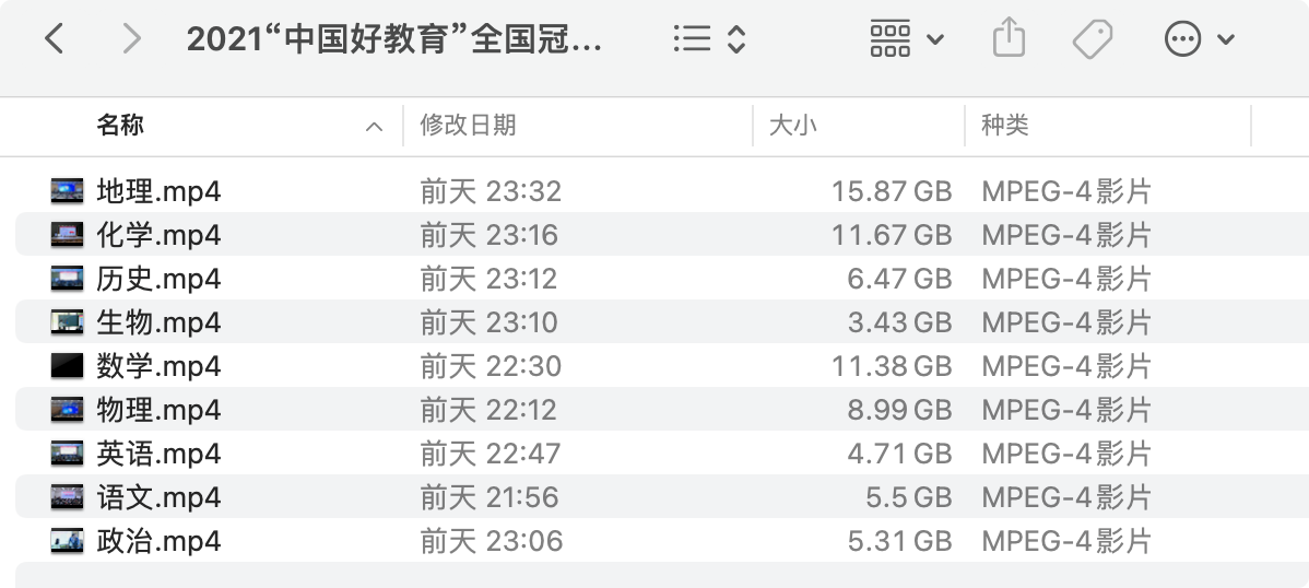 今天,给大家分享的是本次 “中国好教育”教学比武全国冠军总决赛的视频。按学科的分类,共有9个视频,每个视频里面包含很多节优质课,每个视频都长达好几个小时: