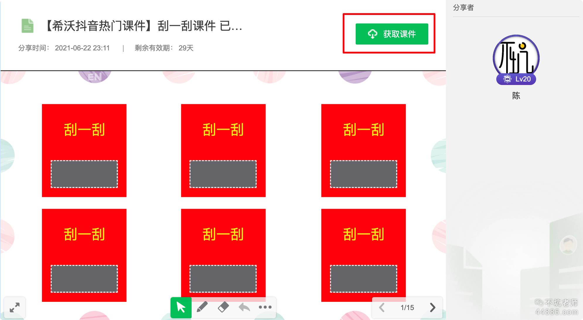 进入上方链接后,点击右上角的“获取课件”,输入手机号,就能把课件直接发送到你的希沃账号中了。