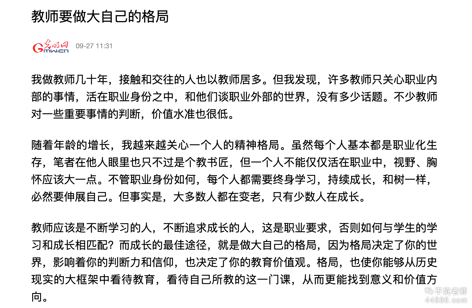 这几天,一篇名叫《教师要做大自己的格局》的文章火了。